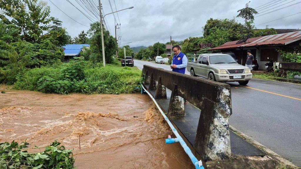 วันที่ 1 ต.ค. 2568 ตั้งแต่เวลา 03.30 น. ได้เกิดเหตุฝนตกหนักในพื้นที่อ.เมืองแพร่ ทำให้น้ำจากอ่างเก็บน้ำห้วยขมิ้น และอ่างเก็บน้ำห้วยผาคำต.ป่าแมต ล้นสปริงเวย์ มวลน้ำไหลเข้าสู่พื้นที่ หมู่ที่ 1, 4, 5, 8 และ 11 ตำบลป่าแมต และหมู่ที่ 1, 2 ตำบลวังธง อำเภอเมืองแพร่ จังหวัดแพร่ ด้านนายสมศักดิ์ สุขประเสริฐ นายอำเภอเมืองแพร่ พร้อมด้วยฝ่ายความมั่นคงอำเภอเมืองแพร่ โดย นางสาวนงลักษณ์ มะทะ ปลัดอำเภอหัวหน้าฝ่ายความมั่นคงอำเภอเมืองแพร่ พร้อมด้วย สมาชิก อส. ร่วมกับนายวีระชัย กุยคำ กำนันต.ป่าแมต ฝ่ายปกครองตำบลป่าแมต นายสุภวัฒน์ ศุภศิรื นายกเทศมนตรีตำบลป่าแมต ได้ลงพื้นที่เพื่อติดตามสถานการณ์น้ำ และเข้าดำเนินการช่วยเหลือประชาชนผู้ประสบเหตุในเบื้องต้น ดังนี้ได้อพยพผู้ป่วย ผู้พิการ ออกจากพื้นที่ประสบภัยประสานชลประทาน หน่วยงานที่เกี่ยวข้อง ผู้รับผิดชอบ เข้าตรวจสอบอ่างเก็บน้ำ ประชาสัมพันธ์ประชาชนในพื้นที่ให้เฝ้าระวังอย่างต่อเนื่อง คาดว่ามวลน้ำจะยังคงไหลเข้าพื้นที่อย่างต่อเนื่อง ทั้งนี้ ฝ่ายความมั่นคงอำเภอเมืองแพร่ ยังคงเฝ้าติดตามสถานการณ์อย่างต่อเนื่อง