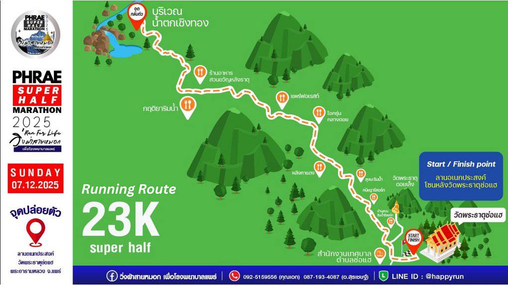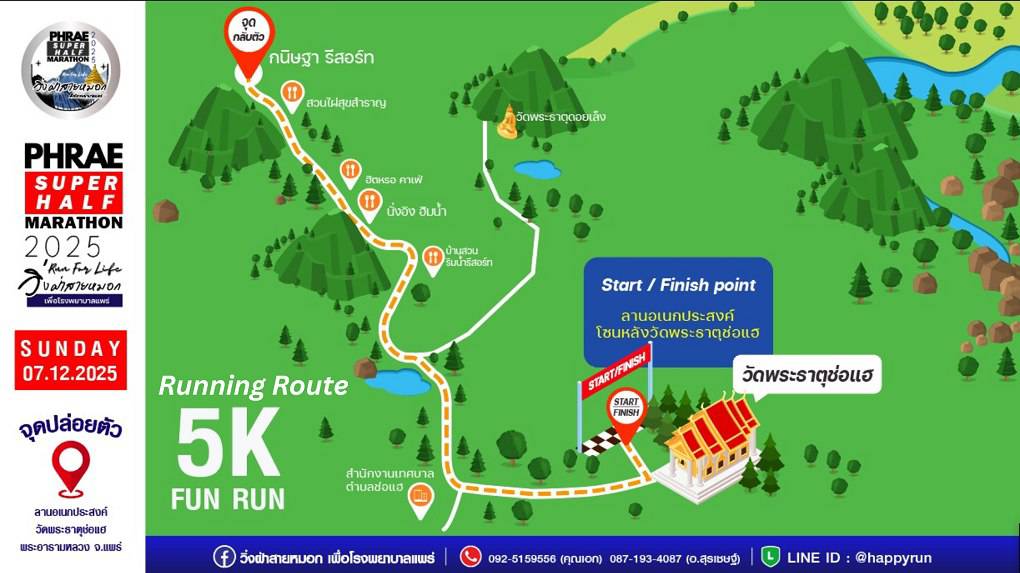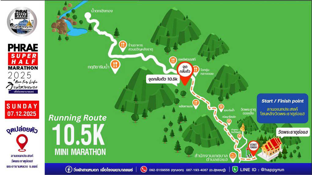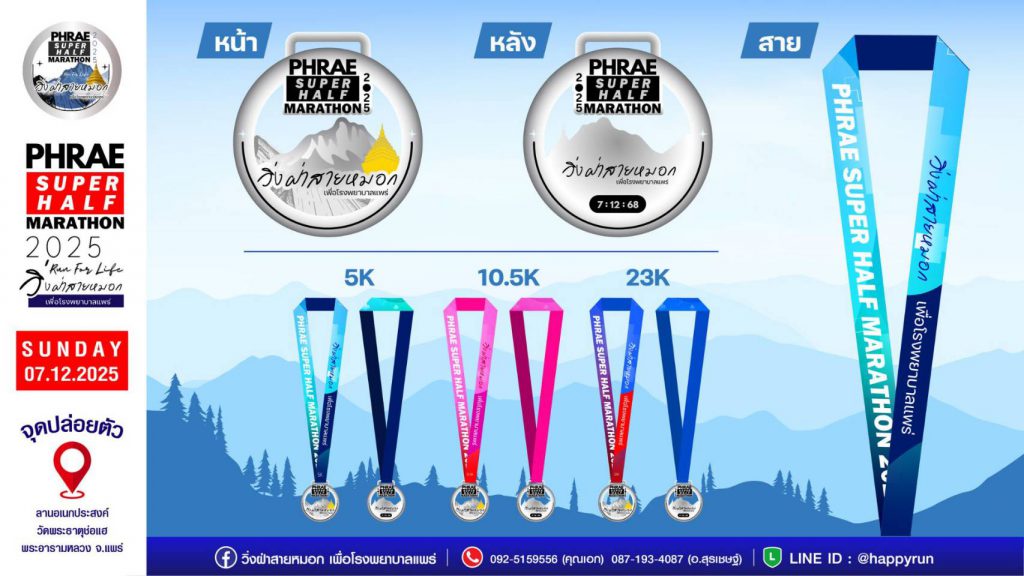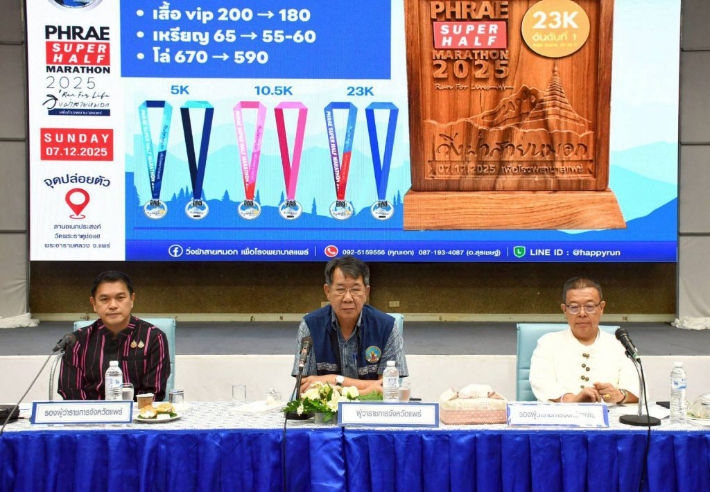 วันที่ 7 ตุลาคม 2568 เวลา 09.30 น. ที่ห้องประชุมแก้วโกศัย ชั้น 6 อาคารเฉลิมพระเกียรติ โรงพยาบาลแพร่ นายสมชัย เลิศประสิทธิพันธ์ ผู้ว่าราชการจังหวัดแพร่ เป็นประธานการประชุมเตรียมการจัดกิจกรรม “วิ่งฝ่าสายหมอก PHRAE SUPER HALF MARATHON 2025” โดยมีนายคุณากร คชหิรัญ และนายชัยสิทธิ์ ชัยสัมฤทธิ์ผล รองผู้ว่าราชการจังหวัดแพร่ พร้อมด้วยคณะกรรมการการจัดงานเข้าร่วมประชุม เพื่อระดมทุนจัดซื้ออุปกรณ์ทางการแพทย์ที่จำเป็นและเร่งด่วนสำหรับโรงพยาบาลแพร่ โดยเปิดโอกาสให้ประชาชนได้มีส่วนร่วมในการช่วยเหลือผู้ป่วย รายได้ทั้งหมดหลังหักค่าใช้จ่ายจะนำไปสมทบทุนเพื่อจัดหาอุปกรณ์ช่วยชีวิต เพื่อให้ผู้ป่วยได้รับการดูแลรักษาอย่างมีประสิทธิภาพและเท่าเทียม สำหรับกิจกรรม “วิ่งฝ่าสายหมอก PHRAE SUPER HALF MARATHON 2025” กำหนดจัดขึ้นในวันอาทิตย์ที่ 7 ธันวาคม 2568 แบ่งการแข่งขันออกเป็น 5 ประเภท ได้แก่ Fun Run (อายุไม่เกิน 18 ปี ) ระยะทาง 5 กิโลเมตร Fun Run ระยะทาง 5 กิโลเมตร Mini Marathon ระยะทาง 10.5 กิโลเมตร Super Half Marathon ระยะทาง 23 กิโลเมตร และ VIP โดยจุดปล่อยตัวนักวิ่งอยู่ที่ลานกิจกรรมวัดพระธาตุช่อแฮ พระอารามหลวง เส้นทางผ่านถนนด้านหลังพระธาตุช่อแฮ ท่ามกลางบรรยากาศธรรมชาติอันงดงามของจังหวัดแพร่ในฤดูหนาว เปิดรับสมัคร Early Bird ระหว่างวันที่ 25 กันยายน – 8 ตุลาคม 2568 สมัครราคาปกติตั้งแต่วันที่ 9 ตุลาคม 2568 และปิดรับสมัคร วันที่ 11 พฤศจิกายน 2568 นี้ สมัครได้ที่ www.phraerun.com หรือติดต่อ 092-5159556 และ087-1934087