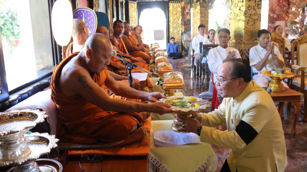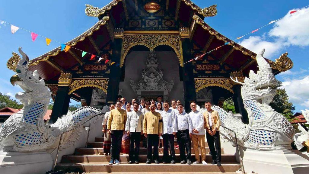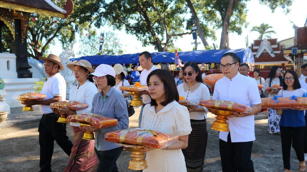 วันเสาร์ที่ 25 ตุลาคม 2568 เวลา 08.00 น. คณะศรัทธามหาวิทยาลัยแม่โจ้-แพร่ เฉลิมพระเกียรติ นำโดย ผู้ช่วยศาสตราจารย์ ดร.รัฐพงศ์ ปกแก้ว คณบดีมหาวิทยาลัยแม่โจ้-แพร่ เฉลิมพระเกียรติ พร้อมด้วยทีมผู้บริหาร คณาจารย์ เจ้าหน้าที่ และพี่น้องประชาชนบ้านแม่ทราย ร่วมกันถวายผ้ากฐินสามัคคี 30ปี มหาวิทยาลัยแม่โจ้-แพร่ เฉลิมพระเกียรติ โดยได้รับเกียรติจาก รองศาสตราจารย์ ดร.วีระพล ทองมา อธิการบดี มหาวิทยาลัยแม่โจ้ เป็นประธานในพิธี ว่าที่ร้อยเอก ดร.จิระชัย ยมเกิด ผู้ช่วยอธิการบดี พร้อมด้วยแขกผู้มีเกียรติของอำเภอร้องกวาง ได้แก่ นายธีระ แก้วมา นายอำเภอร้องกวาง พ.ต.ต.เสกสัน สีทิ สวป.สภ.ร้องกวาง นายชาตรี บุญมาภิ นายกองค์การบริหารส่วนตำบลแม่ทรายร้องกวาง รวมถึงกำนัน ผู้ใหญ่บ้าน และพี่น้องประชาชนในพื้นที่ เข้าร่วมในพิธีถวาย ณ วัดแม่ทราย ตำบลแม่ทราย อำเภอร้องกวาง จังหวัดแพร่ การจัดงานกฐินสามัคคีในครั้งนี้จัดขึ้นเพื่อสืบสานประเพณีอันดีงามทางพระพุทธศาสนา เสริมสร้างความสามัคคีและความสัมพันธ์อันแน่นแฟ้นระหว่างมหาวิทยาลัยกับชุมชน ตลอดจนเป็นการทำนุบำรุงพระพุทธศาสนาให้คงอยู่คู่สังคมไทยสืบไป