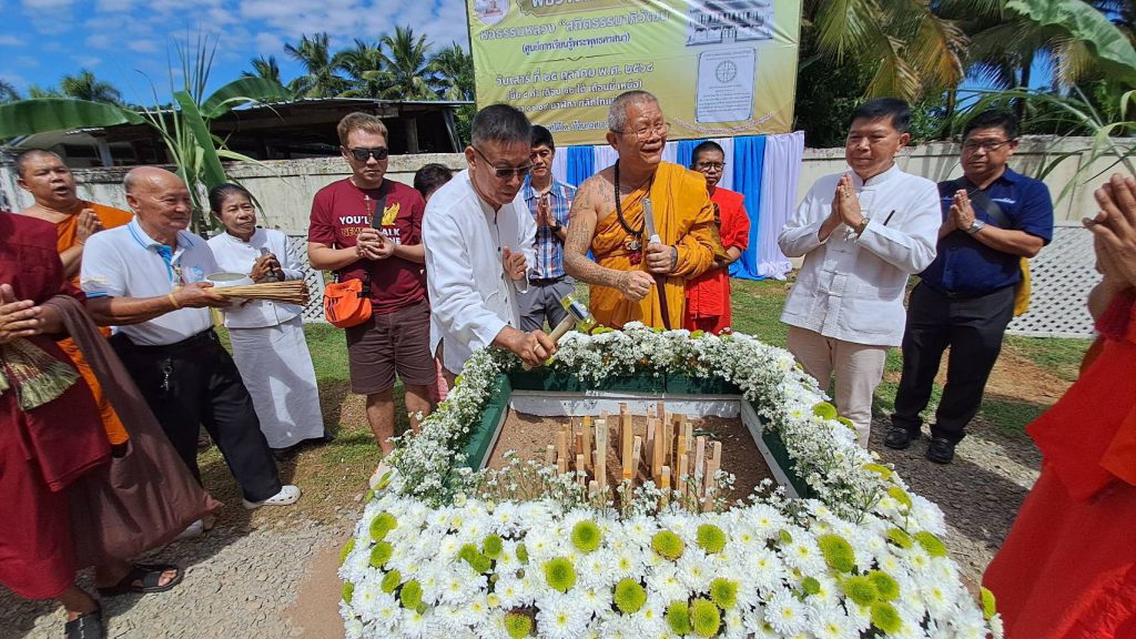 เมื่อวันที่ 25 ตุลาคม 2568 เวลา 11.00 น. พระครูโกศลพิพัฒนคุณ (ครูบาเสนาะ กตสาโร) เจ้าคณะอำเภอสูงเม่น เจ้าอาวาสวัดปงท่าข้าม ประธานฝ่ายสงฆ์ ทำพิธีเจิมแผ่นศิลาจารึกและตอกไม้มงคล และหมออุ๋ย นพ.นิยม วิวรรธนดิษฐกุล สส.แพร่ เขต2พรรคเพื่อไทย เป็นประธานฝ่ายฆราวาส ในพิธีวางศิลาฤกษ์ หอธรรมหลวง “สถิตธรรมาภิวัฒน์” (ศูนย์การเรียนรู้พระศาสนา) ณ มณฑลพิธี วัดกาศใต้ หมู่ 3 ต.บ้านกาศ อ.สูงเม่น จ.แพร่ โดยพิธีบวงสรวงเจ้าที่จากคณะพราหมณ์ของอาจารย์นพดล พรายกลาง เจ้าพิธี พระอธิการอภิวัฒน์ ญาณวโร เจ้าอาวาสวัดกาศใต้ จุดธูปเทียนบูชาพิธีบวงสรวง โดยมี นายมานะ กาศโอสถ นายกองค์การบริหารส่วนตำบลบ้านกาศ น.ส.ชนกนันท์ ศุภศิริ อดีตที่ปรึกษารัฐมนตรีกระทรวงอุตสาหกรรม และคณะศรัทธาชาวตำบลบ้านกาศและตำบลใกล้เคียงร่วมพิธีจำนวนมาก