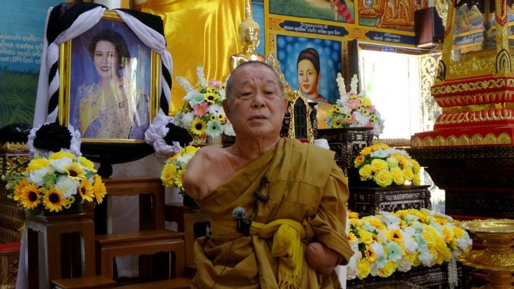 ที่วัดเวียงตั้ง เลขที่109 หมู่ 1ตำบลวังธง อำเภอเมือง จังหวัดแพร่ พระอธิการประดิษฐ์ คำวรรณ์ อายุ 76 ปี พรรษา 54 เจ้าอาวาสวัดเวียงตั้ง ผู้พิการแขนและขาทั้งสองข้าง และเป็นผู้ป่วยในพระบรมราชานุเคราะห์มานานกว่า 40 ปี เปิดเผยด้วยน้ำเสียงสั่นเครือถึงความรู้สึกต่อการเสด็จสวรรคตของสมเด็จพระนางเจ้าสิริกิติ์ พระบรมราชินีนาถ พระบรมราชชนนีพันปีหลวง ว่าเป็นความสูญเสียที่ใหญ่หลวงที่สุดในชีวิต รู้สึกเหมือนขาดที่พึ่งทางใจ หากถวายชีวิตแทนได้ก็ยินดี เพราะพระองค์ทรงเป็นดั่ง “แม่ของแผ่นดิน” ผู้ประทานพระเมตตาและชีวิตใหม่ให้แก่ข้าพเจ้า พระมหากรุณาธิคุณล้นพ้นหาที่สุดมิได้ พระอธิการประดิษฐ์ เล่าว่าเมื่อปี พ.ศ. 2520 มุ่งพัฒนาวัดด้วยแรงศรัทธาของชาวบ้าน แต่ในระหว่างการซ่อมบำรุงวัด ได้เกิดอุบัติเหตุไฟฟ้าช็อตอย่างรุนแรง จนพิการทั้งแขนและขา ต้องรักษาตัวอยู่โรงพยาบาลเป็นเวลานาน สภาพร่างกายและจิตใจตกอยู่ในความทุกข์ถึงขั้นคิดทำร้ายตนเอง เมื่อข้อมูลกราบบังคมทูลขึ้นไปยังเบื้องพระยุคลบาท สมเด็จพระพันปีหลวงทรงรับไว้เป็น “ผู้ป่วยในพระบรมราชานุเคราะห์” ตั้งแต่ปี พ.ศ. 2525 และเสด็จพระราชดำเนินเยี่ยมพระอธิการด้วยพระองค์เอง พระองค์ทรงพระราชทานปัจจัยเพื่อเป็นค่ารักษาพยาบาลและค่าดำรงชีวิต พร้อมทั้งพระราชทานงบประมาณพัฒนาวัดเวียงตั้ง ให้ซื้อที่ดินและปลูกต้นไม้หลายสิบไร่ กลายเป็นแหล่งปฏิบัติธรรมที่ร่มเย็นมาจนถึงปัจจุบัน พร้อมยืนยันจะสืบสานพระราชปณิธานของพระองค์เพื่อพระศาสนาตลอดไป