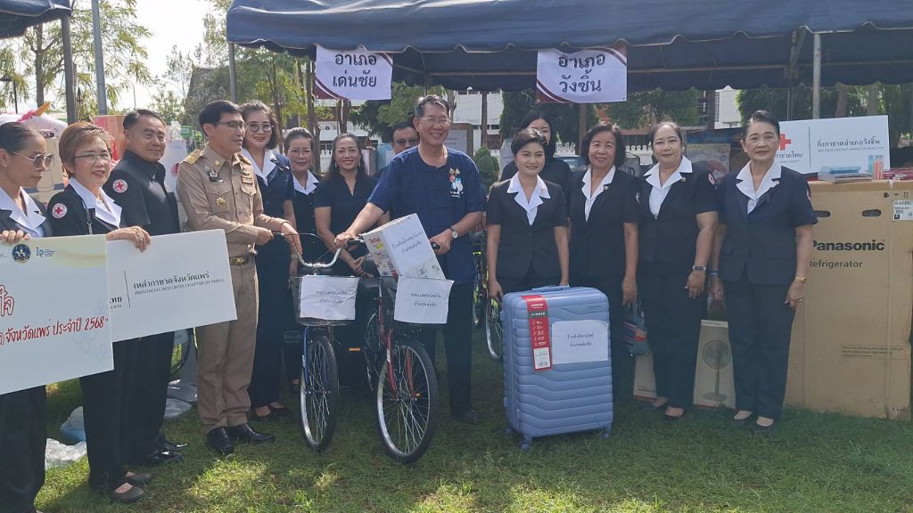 เมื่อ วันที่ 11 พฤศจิกายน 2568 เวลา 09.00 น. ที่สวนสุขภาพเฉลิมพระเกียรติ ร.9 อำเภอเมืองแพร่ จังหวัดแพร่ นายสมชัย เลิศประสิทธิพันธ์ ผู้ว่าราชการจังหวัดแพร่ พร้อมด้วยนางสาวฐิติมา สุภาพันธ์ นายกเหล่ากาชาดจังหวัดแพร่ และหน่วยงานที่เกี่ยวข้อง ร่วมกันแถลงข่าวการเตรียมจัดงาน “มหกรรมของดีจังหวัดแพร่และงานกาชาด ประจำปี 2568” ภายใต้แนวคิด “อวดของดีบ้านฉัน” ซึ่งถือเป็นการรื้อฟื้นงานกาชาดจังหวัดแพร่ ที่ห่างหายไปยาวนานกว่า 15 ปี