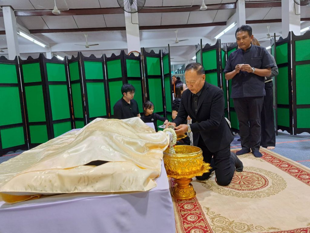 เมื่อเย็นวันที่ 27 พฤศจิกายน 2568 เวลา 16.30 น.นายอนุวัธ วงศ์วรรณ นายกองค์การบริการส่วนจังหวัดแพร่ เป็นประธานพิธีพระราชทานน้ำหลวงอาบศพ อาจารย์สุกิจ ยาพรม อายุ 69 ปี อดีตรองผู้อำนวยการสำนักงานเขตพื้นที่การศึกษา ประถมศึกษาแพร่ เขต 1 ณ วัดพระบาทมิ่งเมืองวรวิหาร อำเภอเมือง จังหวัดแพร่โดยมี นายวิตติ แสงสุพรรณ รองนายกองค์การบริหารส่วนจังหวัดแพร่ คณะผู้อำนวยการสถานศึกษา อดีตผู้อำนวยการสถานศึกษา ครู อาจารย์ ,เพื่อน,และประชาชน ร่วมพิธีโดยเจ้าภาพจะจัดให้มีพิธีพระราชทานเพลิงศพ ในวันที่ 1 ธันวาคม 2568 เวลา 13.00 น. ณ ฌาปนสถานประตูมาน ตำบลในเวียงอำเภอเมือง จังหวัดแพร่