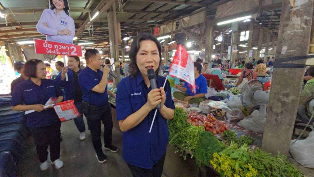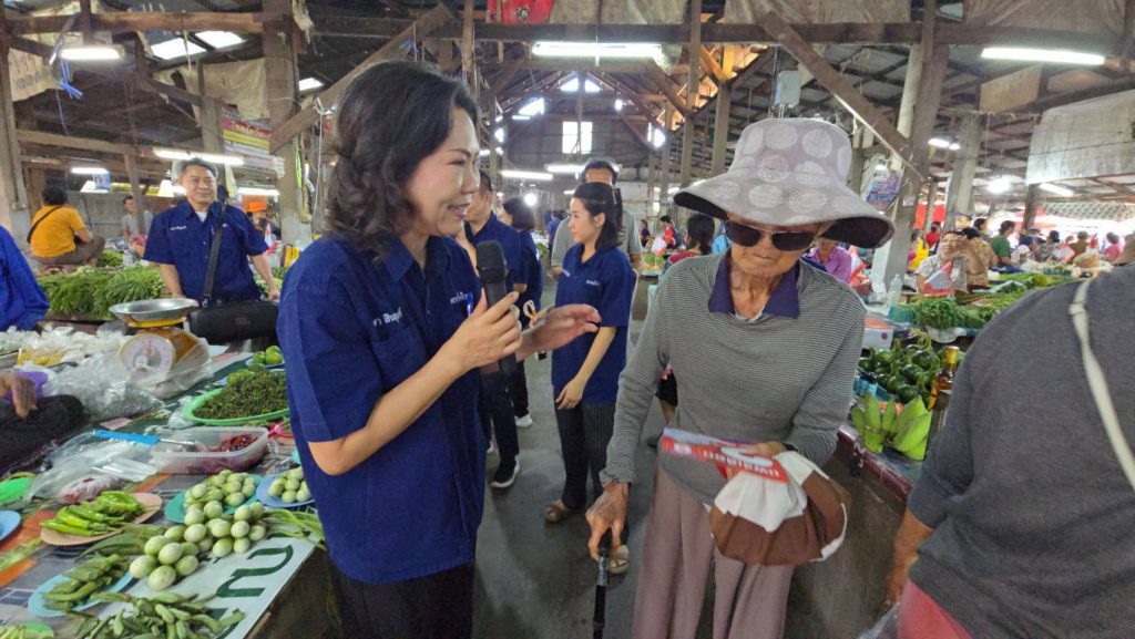 แม่ค้าตลาดยังยังพูดอีกว่าเป็นใครก็ได้มาสมัครพรรคเพื่อไทย เลือกทั้งคนทั้งพรรค เลือกอยู่แล้วค่ะ เพราะดูว่าที่ด็อกเตอร์ยศชนัน ดูแล้วเป็นคนใจดีพูดดีไม่ด่าว่าให้พรรคไหนเลยเจ้า ///สุธัญญา จ.แพร่