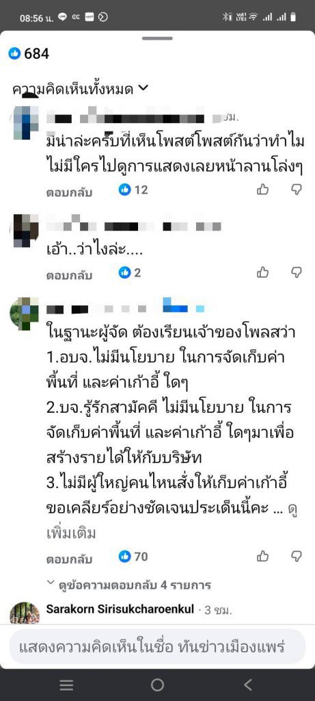มาเดินเที่ยวงานมีนโยบายเก็บค่านั่งด้วยหรือไม่ แม้แต่เครื่องดื่มแอลกอฮอล์ก็แอบลักลอบจำหน่ายภายในงานได้ด้วยหรือ จากกรณีมีชาวบ้านที่ไปเที่ยวงานฤดูหนาวและงานวันเด็กแห่งชาติ ซึ่งจัดที่บริเวณสนามกีฬาองค์การบริหารส่วนจังหวัดแพร่ ระหว่างวันที่ 5-13 มกราคม 2569 โดยมีสมาคมธุรกิจท่องเที่ยวและบริการจังหวัดแพร่ และ สมาคมสื่อมวลชนเพื่อการท่องเที่ยวจังหวัดแพร่ ร่วมกับ บริษัท รู้รักสามัคคีแพร่ (วิสาหกิจเพื่อสังคม) จำกัด เป็นเจ้าภาพในการจัดงาน และมีองค์การบริหารส่วนจังหวัดแพร่เป็นเจ้าของสถานที่นั้น ได้มีประเด็นร้อนขึ้นในในสื่อโซเชียล โดยมีผู้ใช้เฟสบุ๊คท่านหนึ่งโพสต์ข้อความในกลุ่ม สมาคมคนแพร่-Hug phrae ว่า “ขออนุญาต สมาคมเป็นสื่อกลาง สอบถามประเด็นที่กระผมพบเจอวันนี้ คืนช่วงค่ำวันที่ 8 มกราคม 69 ผมได้ไปเดินงานฤดูหนาว จ.แพร่ ไปแวะเยี่ยมชมดนตรีสักพัก เกิดประเด็น ดังนี้1.ช่วงเวลา 19.00-22.00 น จะเป็นการแสดงดนตรีดารารับเชิญ จะมีกลุ่มผู้จัดหรือไม่มีผู้แอบอ้างเก็บค่าเก้าอี้ ตัวละ20บาท 2.เก้าอี้เหล่านั้นตีตราประทับ อบจ แพร่ คนเก็บอ้างผู้ใหญ่สั่งให้เก็บ (ผู้ใหญ่ที่ไหนสั่งให้เก็บ)3.มีคนจำยอมเสียเงินค่าเก้าอี้ โดยประมาณ 20 คน เพื่อได้นั่ง4.หลังจาก4ทุ่ม ผู้จัดเก็บหนีหาย ดารานักร้องเพลงที่@จัดมาร้องหมดเวลา และเริ่มมีคนโวยวายเรื่องค่าเก้าอี้5ในรูปจะเห็นเก้าอี้ อบจ. ซ้อนทับ มากมายแต่มีคนยืน มาพอควร เพราะจะนั่งต้องเสียค่าเก้าอี้ 20 บาท6.คำถามทางผู้จัด และ อบจ มีนโยบายเก็บค่านั่ง ด้วยหรือไม่7. ฝากให้ผู้จัดและผู้เกี่ยวข้องแก้ไขด้วยจากนั้นก็มีผู้เข้ามาแสดงความคิดเห็นกันมากมาย โดยบางคอมเม้นท์ แจ้งว่ามีการลักลอบจำหน่ายเครื่องดื่มแอลกอฮอล์ในบริเวณงาน บ้างก็ว่า “หากินแบบไม่กลัวเกรงโอ้ๆๆๆ เมืองแป้เฮาเสียภาพพจน์หมด จัดการเน้อจ้าวอย่าปล่อยได้ใจ๋ หึๆๆๆๆ” “มิน่าละครับเห็นโพสต์กันว่าทำไมไม่มีใครไปดูการแสดงเลยหน้าลานโล่งๆ” “เอ้า…ว่าไงละ…” “ปัญหานี้ปรึกษาท่านอนุวัฒน์โดยตรงเลยค่ะ” “หากินกันง่ายๆเนาะ” “เขาไม่มีการเก็บนะค่ะ” “ปูเสื่อจบ” “ปกติคนไม่ค่อยเยอะอยู่แล้วแล้วมาเก็บตังอีกจบเลย ทางเข้าดูเหมือนไม่มีงานเลยนะนั้น” “มีไปซะป๊ะหากิ๋นนอนห่มผ้าอยู่บ้านดีกว่าสบายอุ่นบ่หนาว” และอีกหลายๆ คอมเม้นท์ ซึ่งยังเป็นประเด็นร้อนอยู่ในโลกโซเชียลรอหน่วยงาน หรือองค์กรที่เกี่ยวข้องออกมาตอบคำถามให้ชาวบ้าน ฝากถึงผู้จัดทั้ง 3 องค์กร ให้เข้าดูแลการจัดงานอย่างใกล้ชิด เพราะหากเป็นเช่นนี้จริงการจัดงานวันเด็กแห่งชาติที่จะมีขึ้นในวันเสาร์ท